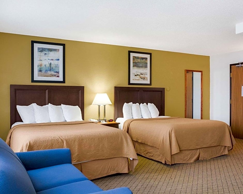 The types of rooms available at Quality Inn Oacoma include Queen Rooms, King Rooms, and Queen Rooms with Two Queen Beds. All rooms are non-smoking and have a TwinDouble room type. The Queen Rooms with Roll-in-Shower are accessible and have a Double room type. The Queen Rooms with Two Queen Beds have a larger room size of 301 sqft and can accommodate up to 4 adults and 3 children.