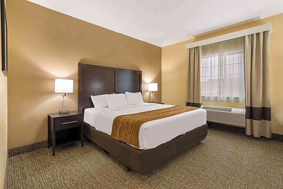 The Comfort Inn Yankton SD offers a variety of room options including King Rooms with disability access, Standard Queen Rooms with two queen beds, King Suites, Standard King Rooms, and King Suites with a spa bath. All rooms are non-smoking and have a room size of 248 sqft. The accommodations range from 2 adults and 1 child to 4 adults and 3 children, with bed sizes varying between king and queen size.
