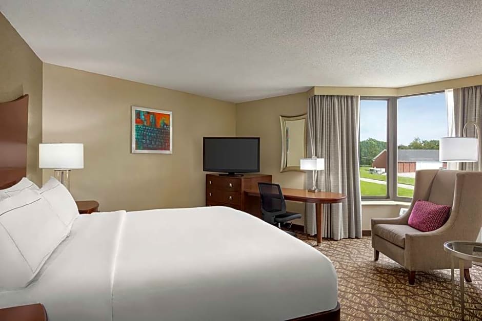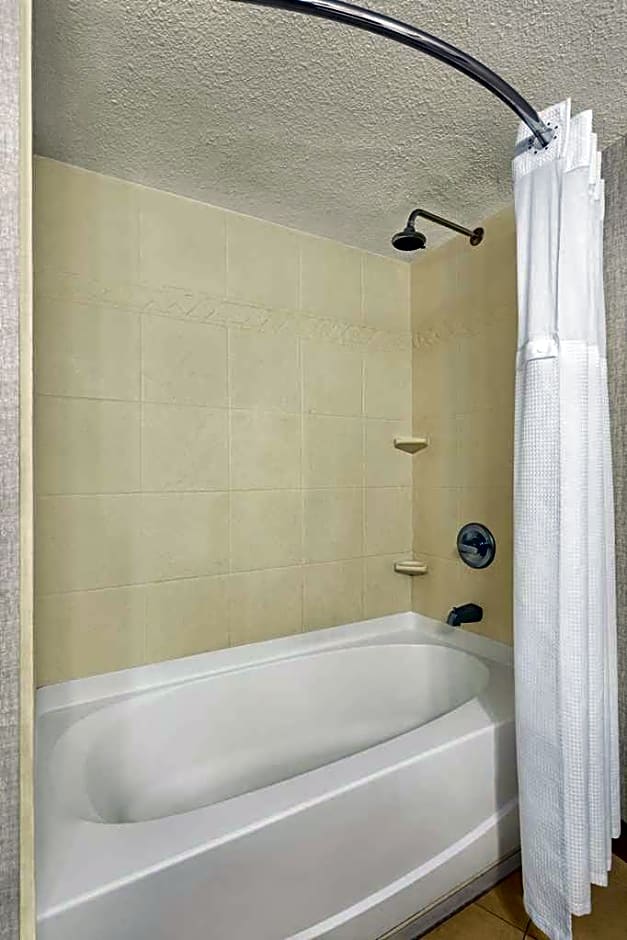 This mobility accessible standard room features one king-sized bed, refrigerator, and an accessible tub. Any corresponding photo may not reflect the specific accessible room type or room feature.