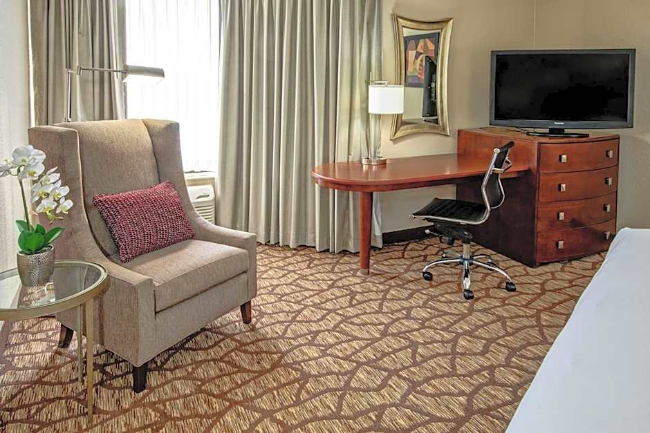 Complimentary WiFi, living area, mini-refrigerator, microwave, 42-inch TV, sofa bed Relax in this junior suite with the Sweet Dreams® by DoubleTree king-sized bed. Designed for comfort, the bed features 5 jumbo hypoallergenic down pillows and a triple sheeted down blanket. The living area includes a 42-inch TV, an overstuffed chair with ottoman and pull-out sofa bed. Work at the desk with ergonomic chair and keep in touch with complimentary WiFi. Refresh in the bathroom offering combed cotton terry and luxurious bath products. Other amenities include a small refrigerator, microwave and wet bar.