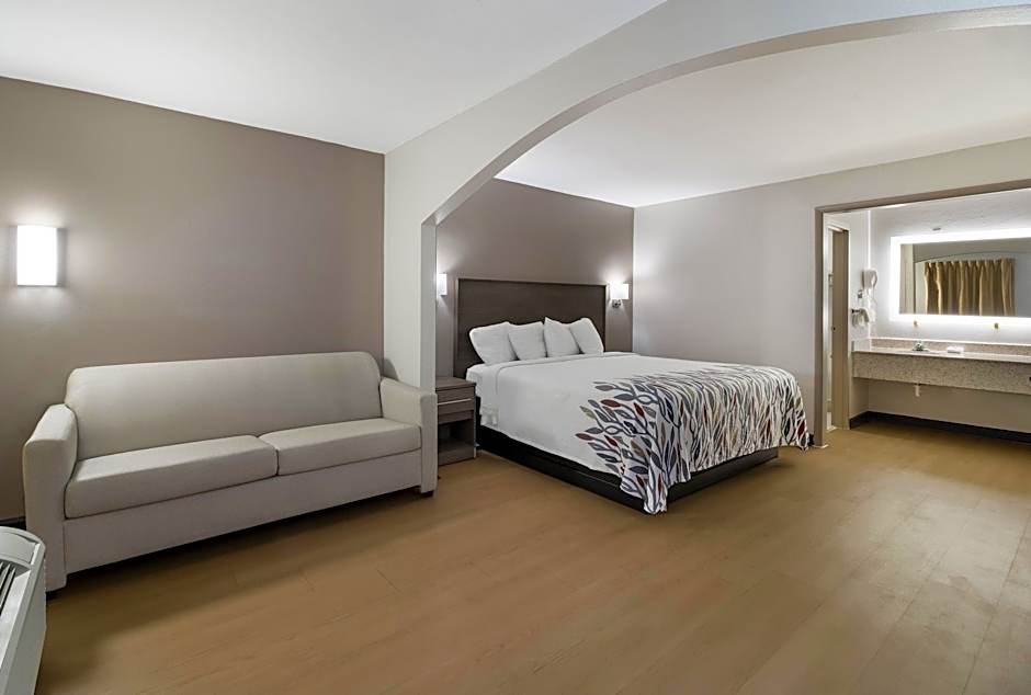 The Red Roof Inn & Suites in Jackson, TN offers a variety of rooms including Deluxe Rooms with two queen beds, Superior King Rooms, Suite King Rooms, and Suite King Rooms with a spa bath. All rooms are non-smoking and range in size from 280 to 420 square feet. The rooms can accommodate either 2 adults and 1 child or 4 adults and 3 children, depending on the room type.