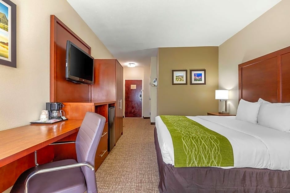The Comfort Inn Lenoir City offers a variety of rooms, including King Rooms with accessible tubs, King Rooms, Queen Rooms with two queen beds, Superior Queen Suites with two queen beds, King Rooms with roll-in showers, and Superior King Suites. All rooms are non-smoking. The King Room can accommodate up to 3 adults and 2 children, while the Queen Room can accommodate up to 4 adults and 3 children. The Superior Queen Suite can accommodate up to 5 adults and 4 children, and the Superior King Suite can accommodate up to 3 adults and 2 children.