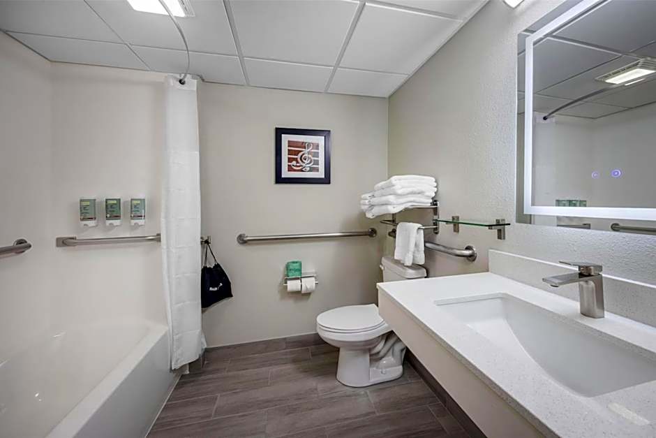 1 King Mobility Accessible Comm Assist Roll In Shower Microwave Fridge NSMK Continental Breakfast includes a king-size bed 150-183 width plus desk, satellite tv , cable tv, hairdryer, and ironing set and is Wheelchair-accessible.
