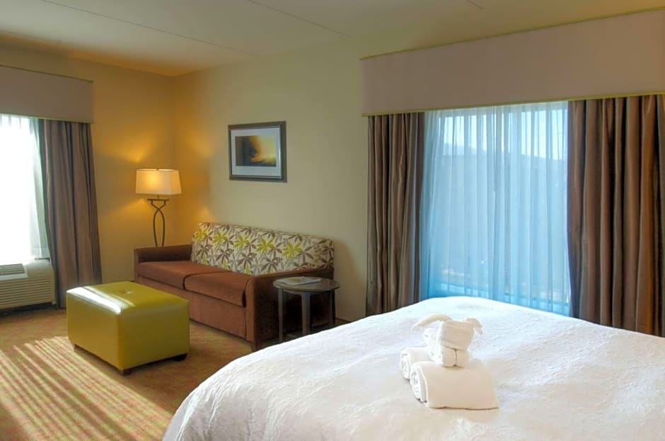 The Hampton Inn Pigeon Forge offers a variety of room types including King Rooms with Sofa Bed, 1 King Bed Whirlpool Fireplace, 2 Queen Beds, 2 Queens Mobility/Hearing Access Tub, 1 King Mobility/Hearing Access with Tub, 1 King Bed with Sofabed, 2 Queen Beds Sofabed Fireplace, 1 King Bed, and 2 Queen Beds Fireplace. All rooms are non-smoking and have a size of 248 sqft. The occupancy ranges from 2 adults and 1 child to 6 adults and 4 children, depending on the room type.