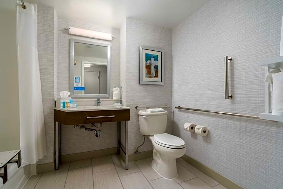 Any corresponding photo may not reflect the specific accessible room type or room feature. This mobility and hearing accessible, nonsmoking room features one king sized bed , and an accessible roll-in shower and attached shower chair. The room also has a visual alarm and notification devices for the doorbell or door knock and incoming phone calls. The room features comfortable soft overstuffed chair, a 32" HDTV, and easy to operate alarm clock/radio. The free high speed internet access will help you stay connected while on the road. If you prefer not to work at the desk, you can use the convenient lapdesk instead. You'll also enjoy the convenience of having a coffee maker with coffee service and iron/ironing board in your room.