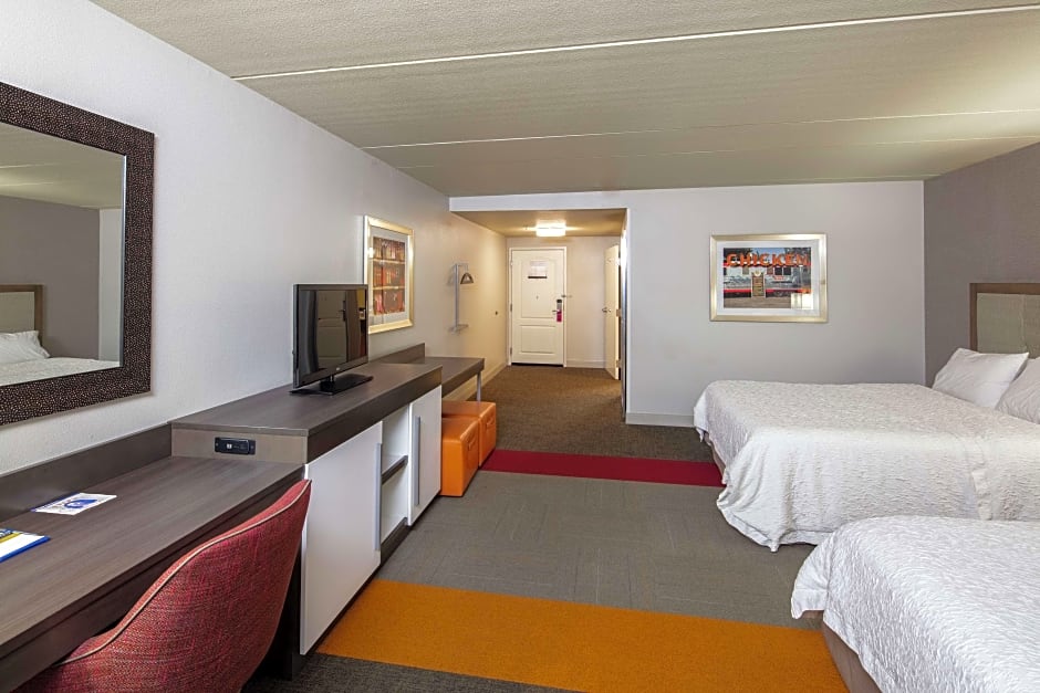 The hotel offers Queen Rooms with two queen beds, both in a mobility accessible/non-smoking version and a non-smoking version. These rooms are suitable for quadruple occupancy, accommodating 4 adults and 3 children. The Deluxe King Room is a non-smoking double room with a king-size bed, suitable for 2 adults and 1 child. Additionally, they offer a King Studio Suite with a king-size bed, suitable for 4 adults and 3 children.