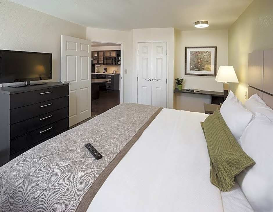 The hotel offers One-Bedroom Queen Suites and Queen Studio Suites. One-Bedroom Queen Suites have a room size of 753 sqft, can accommodate 3 adults and 2 children, and have a sofa bed and a queen size bed. Queen Studio Suites have a room size of 452 sqft, can accommodate 2 adults and 1 child, and have a queen size bed. Smoking is not allowed in any of the rooms.