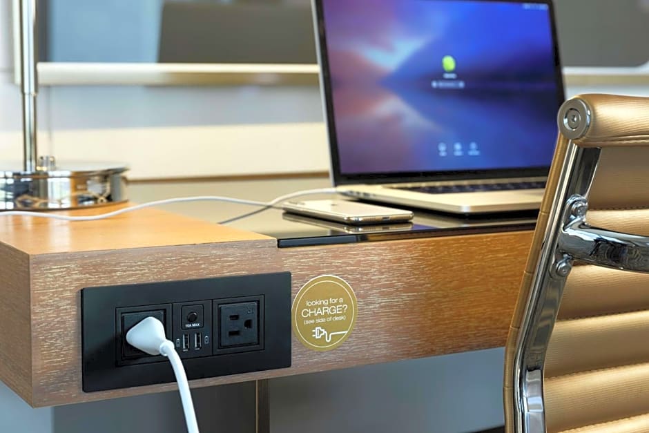 Floor-to-ceiling windows, lounge area, wet bar with mini-refrigerator, desk and chair, TV. Relax in this stylish suite, complete with one king-sized bed, lounge area and floor-to-ceiling windows. Keep on top of business at the spacious desk with ergonomic chair, browse online using WiFi (fees apply), or unwind on the couch and watch a movie on the 46-inch TV. Other features include a wet bar with mini-refrigerator and the Sweet Dreams® by DoubleTree signature bed package.