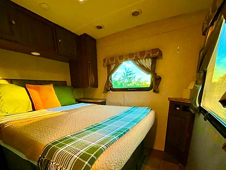 Boasting a private entrance, this air-conditioned mobile home features 1 living room, 1 separate bedroom and 1 bathroom with a bath and a shower. Guests will find a stovetop, a refrigerator, kitchenware and an oven in the fully equipped kitchen. The mobile home also comes with a barbecue. The mobile home has a tea and coffee maker, a dining area, a wardrobe as well as a terrace with garden views. The unit has 1 bed.