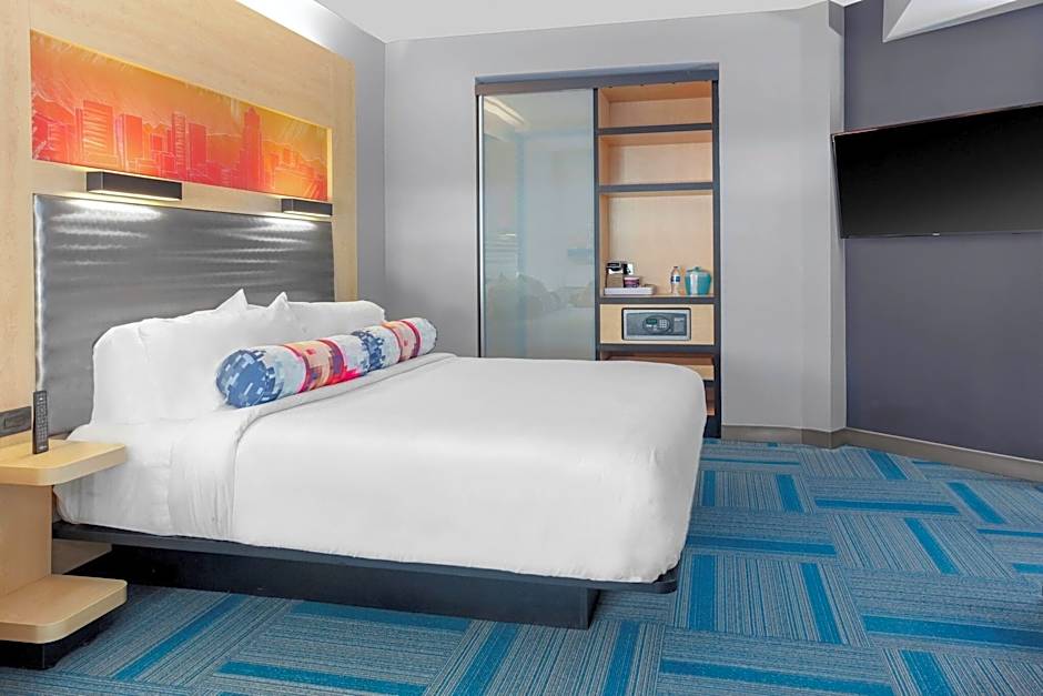 At Aloft El Paso Downtown, the available room options include the Aloft King, which has 1 King bed and accommodates 2 adults and 1 child. The Aloft Two Doubles has 2 Double beds and can accommodate 4 adults and 3 children. The Savvy King room also has 1 King bed and accommodates 2 adults and 1 child. Smoking is not allowed in any of these rooms.