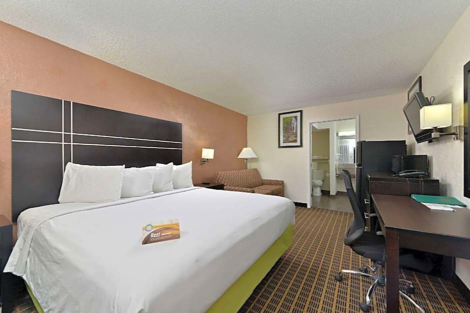 At Quality Inn Gonzales, rooms available include Queen Rooms with Two Queen Beds for families, both smoking and non-smoking options, accommodating up to 4 adults and 3 children. King Rooms are also offered, featuring a single King size bed, suitable for 2 adults and 1 child, with both smoking and non-smoking variants. The non-smoking King Room includes accessibility features.