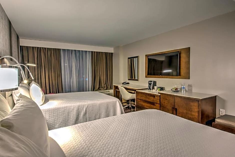 The hotel offers various room types including Premium King Rooms with or without balconies, Premium King Suites, King Rooms with a bath tub (mobility/hearing access), Queen Rooms with two Queen beds, and a Two-Bedroom Presidential Suite. Smoking is not allowed in any of the rooms. The rooms accommodate either 2 or 4 adults and have either a King or Queen bed.