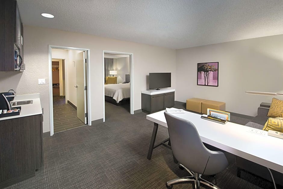 This mobility accessible standard one bedroom suite features one king-sized bed, and an accessible tub. Grab bar in tub with attached accessible seating, lowered vanity in bathroom, and lowered shelf in closet. The ergonomic Mirra chair by Herman Miller is good for your back and better for work. Enjoy your favorite television show on our 36-inch HDTV. There's also a microwave, refrigerator and coffee/tea maker to help you feel at home. A separate living area with a full-sized sofa bed, coffee table and TV. For conducting business, our rooms ensure your productivity thanks to the spacious work desk, two telephones with dataport and voicemail and complimentary WiFi access. Any corresponding photo may not reflect the specific accessible room type or room feature.