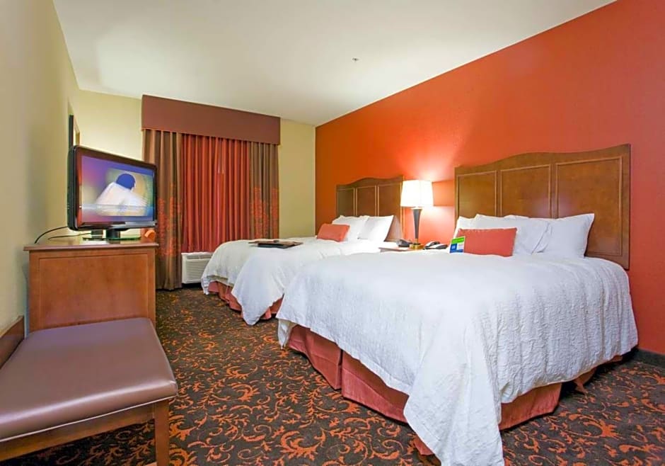 Free WiFi, 32-inch LCD TV, mini-refrigerator, microwave, coffeemaker, work desk with chair, shower This non-smoking room features 2 queen-sized clean and fresh Hampton beds®, and 32-inch LCD TV. If you have work to do there is a desk with chair, and free WiFi access. For your convenience the room is equipped with a mini-refrigerator, microwave and coffeemaker. Refresh in the bathroom which has a Waterpik showerhead and curved shower rod that allows for more light and space in the shower.