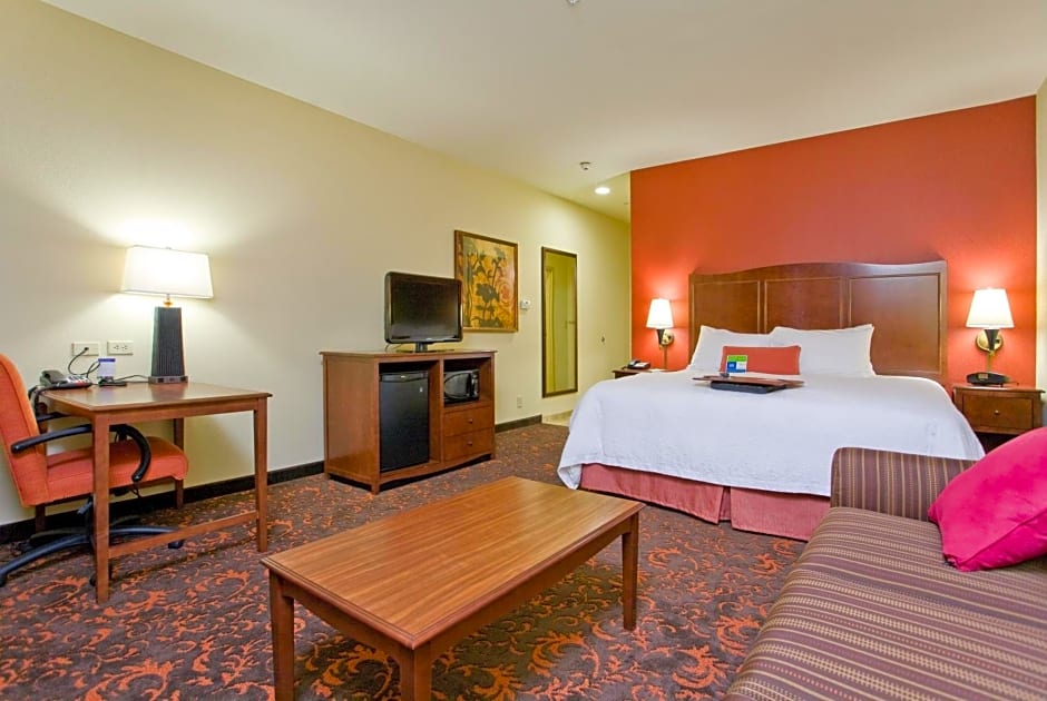 Sofa bed, free WiFi, 32-inch LCD TV, wet bar, mini-refrigerator, microwave, coffeemaker, work desk Stretch out in this non-smoking studio suite which features our king-sized clean and fresh Hampton bed®, a comfortable sofa bed, and 32-inch LCD TV. If you have work to do there is a desk with chair, and free WiFi access. For your convenience the room is equipped with a wet bar, mini-refrigerator, microwave and coffeemaker. Refresh in the bathroom which has a Waterpik showerhead and curved shower rod that allows for more light and space in the shower.