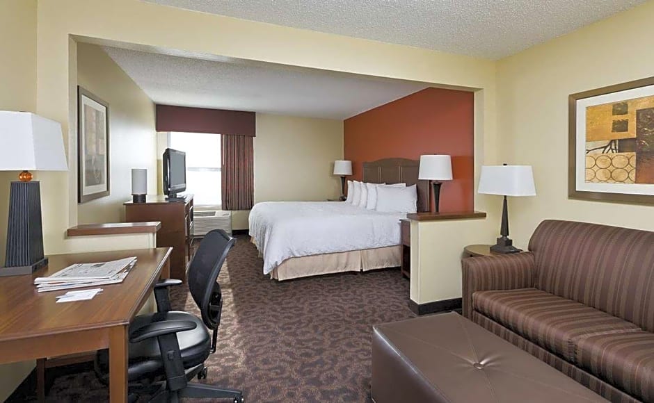 The Hampton Inn San Angelo offers a variety of room options including family rooms with two double beds or two queen beds, king rooms with a sofa bed, and triple rooms with a king-size bed. All rooms are non-smoking and range in size from 269 to 344 square feet. The rooms can accommodate a maximum of 5 adults and 4 children, with some rooms also offering accessibility features for hearing-impaired guests.
