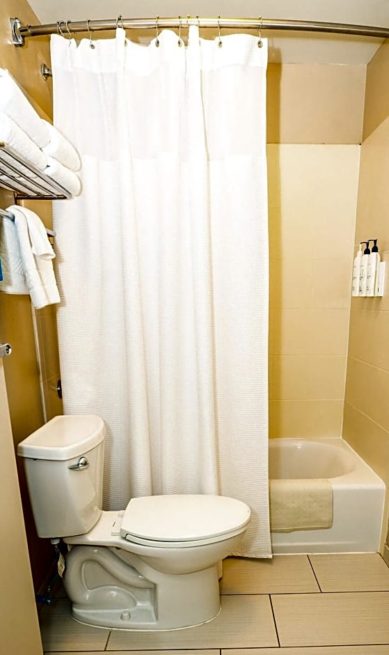 After a day spent exploring downtown San Antonio, unwind by the outdoor heated pool with a shallow end—perfect for a quick splash or a lazy float. Beach chairs and loungers line the poolside, inviting sun-drenched moments, while free WiFi and air conditioning keep comfort dialed in. A sleek bar offers a casual spot to wind down, and an elevator makes getting around a breeze.