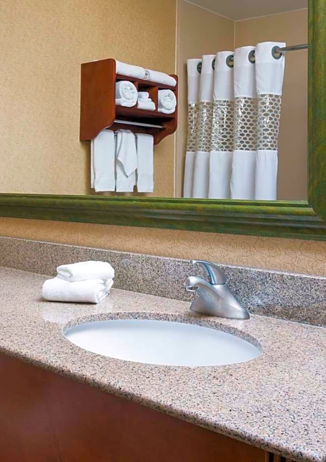 Unwind in this welcoming and convenient room with one king clean and fresh Hampton bed®. Relax watching the TV or stay on top of business at the desk. Keep up-to-date with free WiFi. This room also has a coffeemaker and a sofa bed. The bathroom includes a shower with a curved rod that allows for more space and light.
