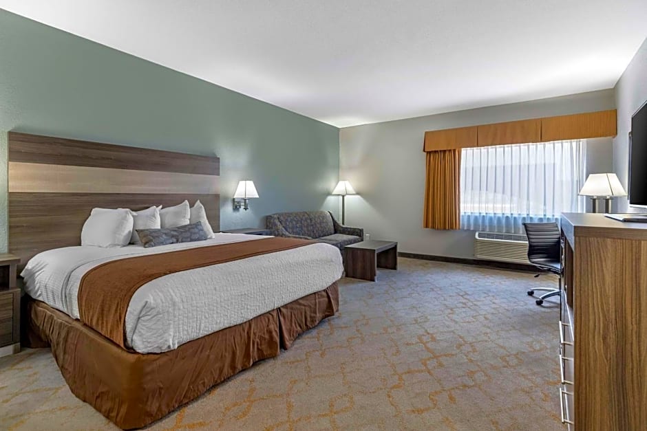 The Best Western PLUS Victoria Inn & Suites offers a variety of room types. These include King Suites with Sofabed and King Suites with Bathtub for non-smoking guests. The hotel also provides King Rooms and Queen Rooms with Two Queen Beds, all of which are non-smoking. Each room type has different occupancy capacities, ranging from 2 adults and 1 child to 4 adults and 3 children.
