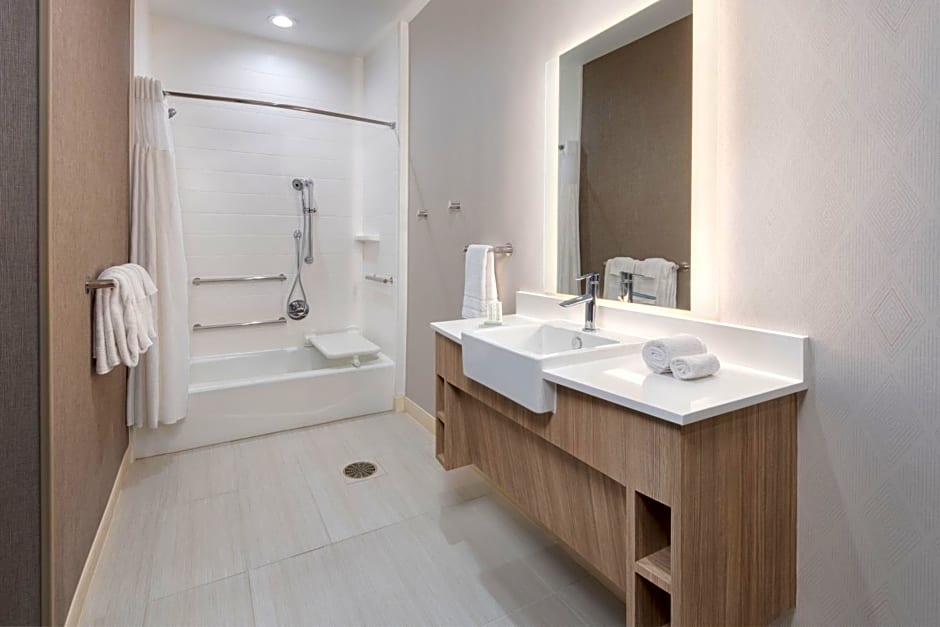 The hotel offers suites with various bed configurations, including two queen beds and a sofa bed or a king bed with a sofa bed. Some suites are specifically designed for accessibility needs, including adapted tubs or hearing accessibility. Smoking is not allowed in any of the rooms. The room sizes range from 377 sqft to 441 sqft.