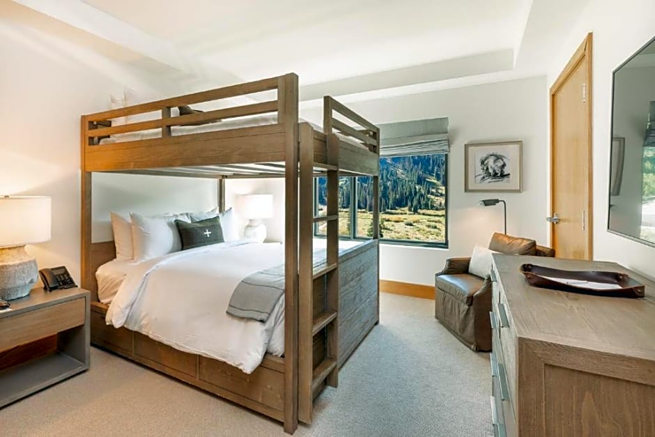 254 sq ft. This cozy mountain retreat is the definition of luxury mountain style in our hotel room with one double bunk bed and an additional full-sized bed. This room features a modern bathroom, comfortable furniture and views of Alta and the surrounding mountains.