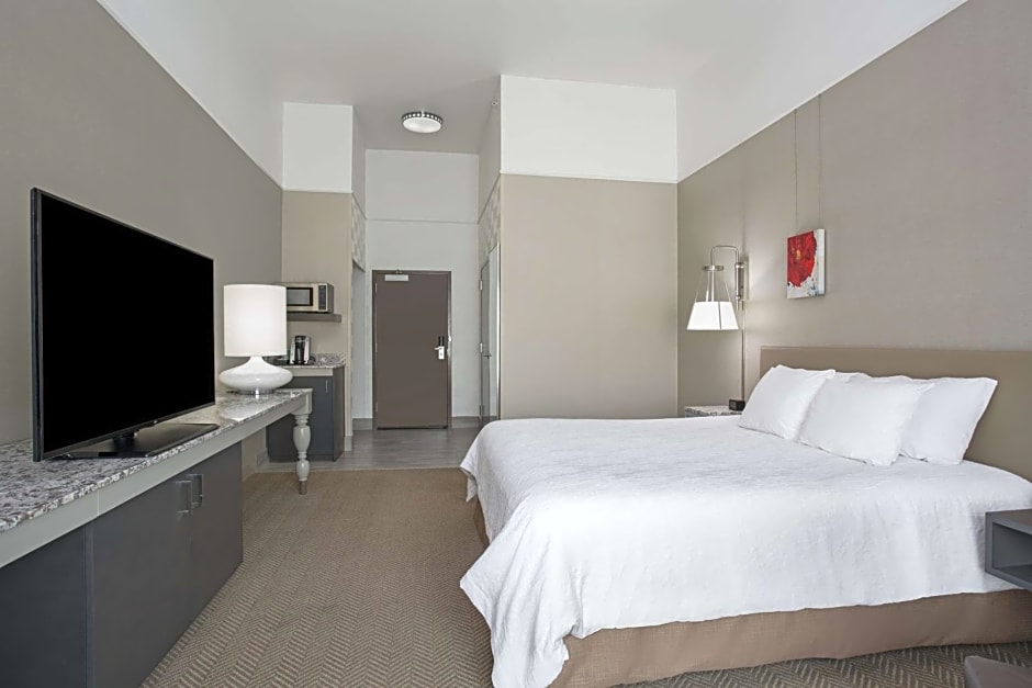 Any corresponding photo may not reflect the specific accessible room type or room feature. This mobility and hearing accessible standard room features one king bed, and an accessible tub. The room also has a visual alarm, and notification devices for the doorbell or door knock and incoming telephone calls. Grab bar in tub, lowered vanity in bathroom, and lowered closet shelf. And the pursuit of the perfect night's stay continues with an evolution of innovative new amenities including the bed, chair, and television. The Garden Sleep System is one of the most comfortable beds you will ever experience. The ergonomic Mirra chair by Herman Miller is good for your back and better for work. Enjoy your favorite television show on our 36 inch high definition television. There is also a microwave, refrigerator and coffee/tea maker to help you feel at home. And for conducting business, our rooms ensure your productivity thanks to the spacious work desk, two telephones with dataport and voicemail