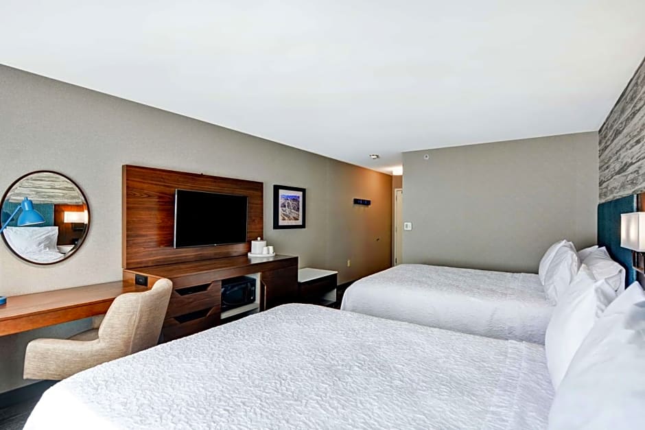 The Hampton Inn Moab offers a variety of room options including Queen Rooms with Two Queen Beds, King Studios, King Rooms, and Queen Studios. None of the rooms allow smoking. The Queen Rooms with Two Queen Beds and the Queen Studio can accommodate larger groups, with the ability to accommodate up to 5 adults and 4 children. The rooms range in size from 248 sqft to 355 sqft.