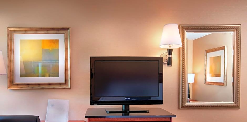 This mobility accessible, non-smoking room features one king-sized bed, and an accessible bath tub. The room features comfortable soft seating, a HDTV, a refrigerator, microwave, and an easy to operate alarm clock/radio. The free WiFi will help you stay connected while on the road. If you prefer not to work at the desk, you can use the convenient lapdesk instead. You'll also enjoy the convenience of having a coffeemaker with tea service and iron/ironing board in your room. Any corresponding photo may not reflect the specific accessible room type or room feature.
