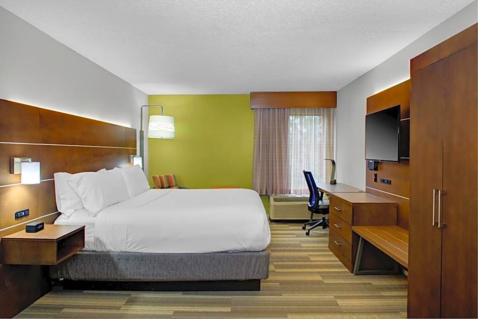 The Holiday Inn Express - Chester offers a variety of room types. They have King Rooms with mobility access and roll-in shower or mobility access tub, both non-smoking. There are also King Rooms with a sofa bed and King Suites available, all non-smoking. The rooms accommodate different numbers of adults and children, ranging from 2 adults and 1 child to 4 adults and 3 children. The bed sizes include King, Double, Queen, and Sofa Bed.