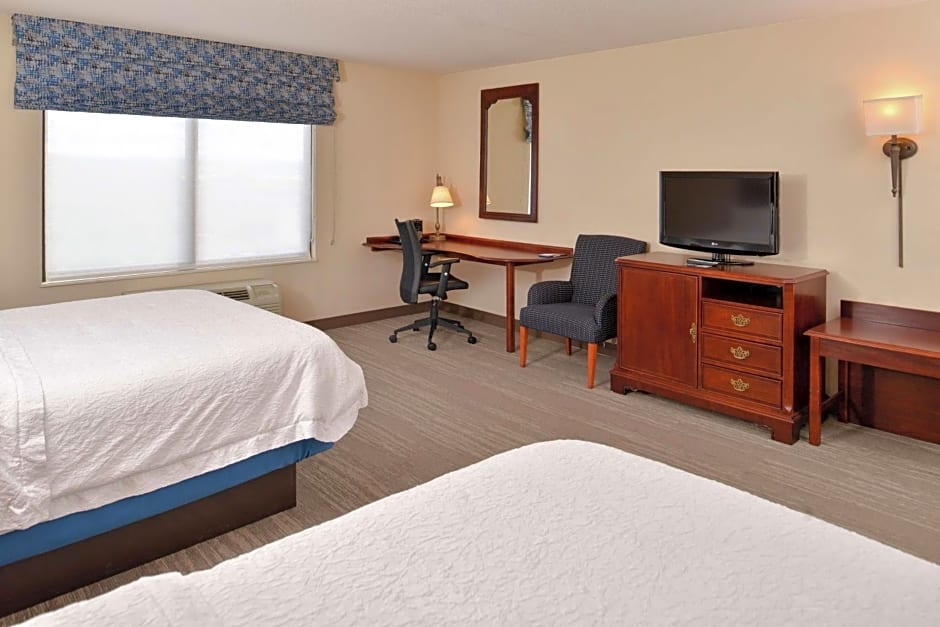 Larger room, free WiFi, 32-inch HDTV, work desk & ergonomic chair, coffeemaker Enjoy a relaxing stay in this larger, non-smoking room which contains two queen-sized clean and fresh Hampton beds®. Relax and watch a movie on the 32-inch HDTV or work at the desk with ergonomic chair and stay connected with free WiFi access. Refresh yourself in the bathroom with fluffy towels, a shower with WaterPik showerhead and curved shower rod which allows more light and space in the shower. Other thoughtful amenities provided include a coffeemaker.