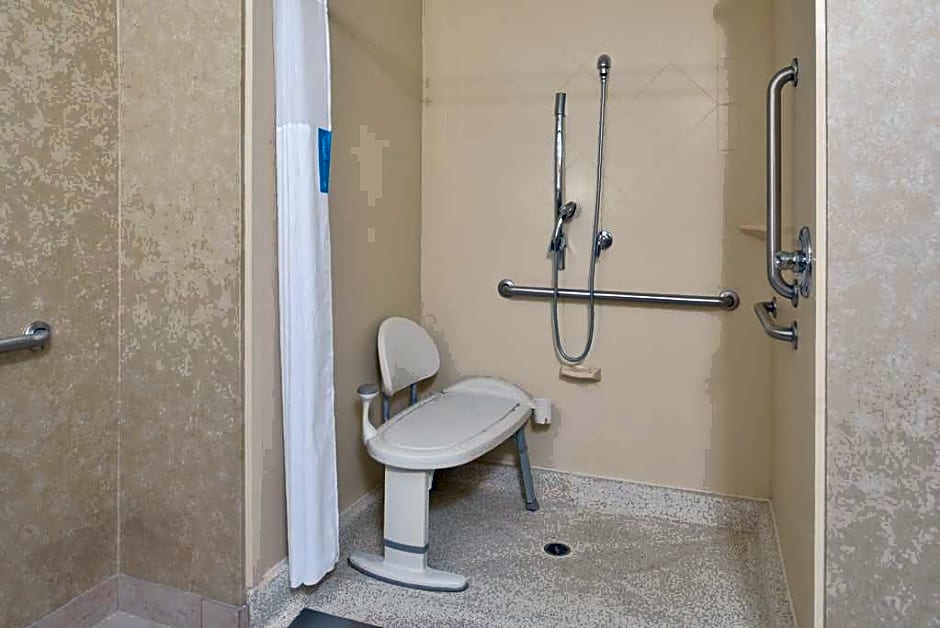 Any corresponding photo may not reflect the specific accessible room type or room feature. This mobility accessible, nonsmoking room features one king sized bed , and an accessible roll-in shower. The room features comfortable soft seating, refrigerator, a HDTV, and easy to operate alarm clock/radio. The free high speed internet access will help you stay connected while on the road. If you prefer not to work at the desk, you can use the convenient lapdesk instead. You'll also enjoy the convenience of having a coffee maker with tea service and iron/ironing board in your room.