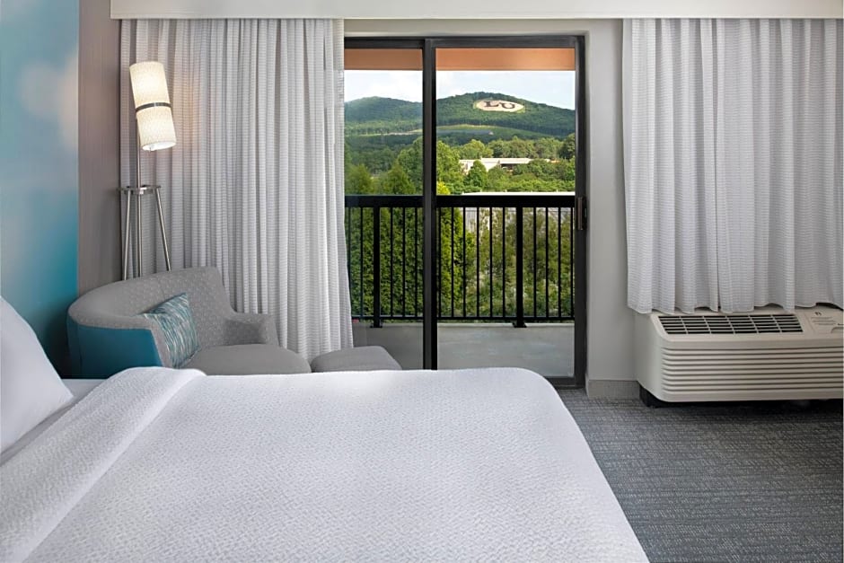 The Courtyard by Marriott Lynchburg offers two types of rooms: King Room with Sofa Bed and Double Room with Two Double Beds. Both room types are double occupancy and do not allow smoking. The King Room with Sofa Bed has a king-size bed, while the Double Room with Two Double Beds has one king-size bed and one sofa bed.