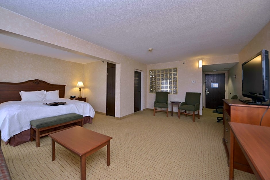 Any corresponding photo may not reflect the specific accessible room type or room feature. This mobility accessible, non-smoking room features one king-sized bed, and an accessible roll-in shower. The room features comfortable soft seating, refrigerator, a HDTV, and easy to operate alarm clock/radio. The free high-speed internet access will help you stay connected while on the road. If you prefer not to work at the desk, you can use the convenient lap desk instead. You'll also enjoy the convenience of having a coffeemaker with tea service and iron/ironing board in your room.
