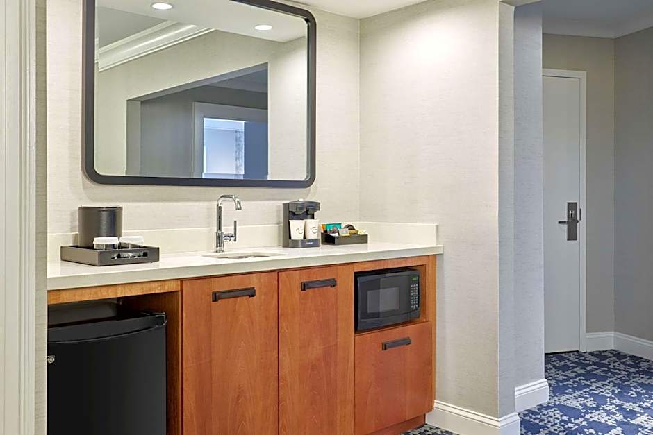 Modern 496 sq. ft. suite features a separate bedroom, refrigerator, microwave, full-sized sofa bed, two 37-inch flat-screen TVs and private living area. A full cooked-to-order breakfast and cocktails and snacks at our Evening Reception are included daily. (Must be of legal drinking age)