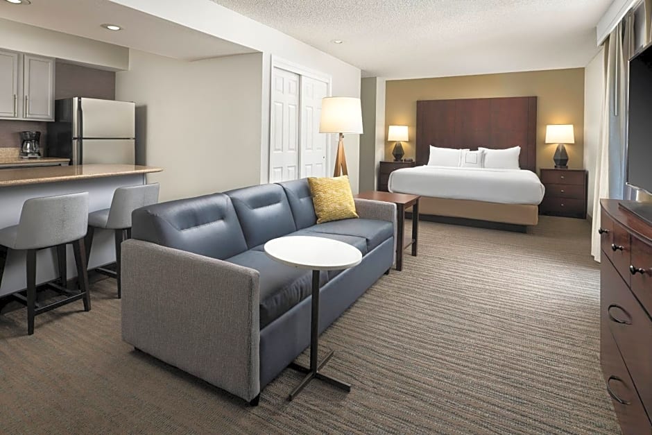 The hotel offers Studio rooms with either 1 King or 1 Queen bed along with a sofa bed. The Studio rooms have a size of 560 sqft and can accommodate 3 adults and 2 children. There is also a Studio room with a sofa bed and adapted tub for guests with mobility and hearing accessibility needs. The hotel also has Two-Bedroom Suites with a size of 990 sqft and can accommodate 5 adults and 4 children. Additionally, they offer One-Bedroom King Suites with a size of 592 sqft, which can accommodate 3 adults and 2 children. All rooms are non-smoking.