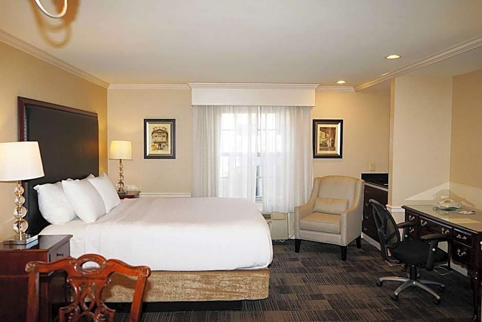 The Wingate by Wyndham Bellingham Heritage Inn offers a range of room types, including King Studios, King Rooms, King Studio Suites, Deluxe King Studio Suites, Queen Rooms, Queen Studios, Queen Rooms with Two Queen Beds, Queen Rooms with Mobility Access, and Superior King Studio Suites. All rooms are non-smoking and accommodate 2 adults and 1 child, except for the Deluxe King Studio Suite and Queen Room with Two Queens Beds, which accommodate 4 adults and 3 children. The rooms feature King or Queen size beds and vary in size and occupancy.