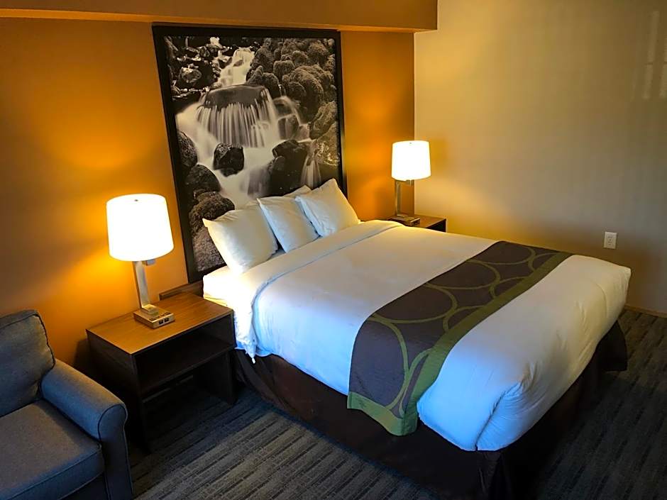 The Super 8 by Wyndham Lynnwood offers several room options including Deluxe King Rooms and Deluxe Queen Rooms, both of which are non-smoking and have a room size of 280 sqft. The Deluxe King Room accommodates 4 adults and 3 children with 1 King size bed and 1 Sofa Bed, while the Deluxe Queen Room accommodates 3 adults and 2 children with 1 Queen size bed. They also have Queen Rooms with Two Queen Beds, both for mobility access and non-smoking, accommodating 4 adults and 3 children with 2 Queen size beds.