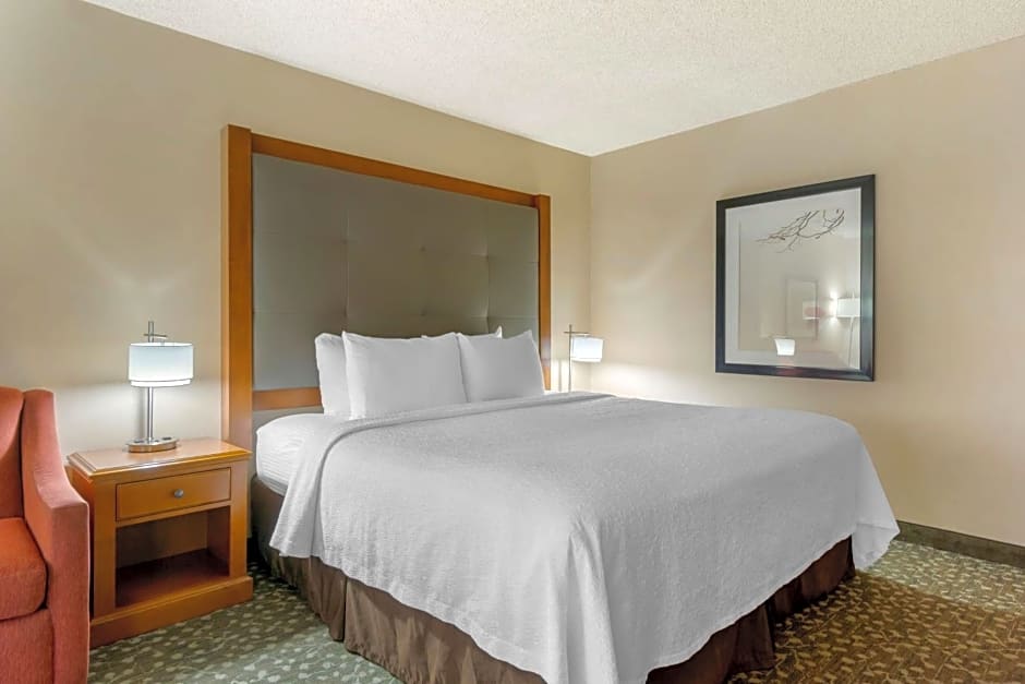 The hotel offers various room types including Deluxe King Rooms, Queen Rooms with Bathtub - Disability Access, King Rooms, and Queen Rooms with Two Queen Beds. These rooms are non-smoking and have a room size of 301 sqft. The Deluxe King Room and King Room both have 1 King size bed, while the Queen Room with Bathtub - Disability Access and Queen Room with Two Queen Beds have 1 Queen size bed and 2 Queen size beds respectively. The rooms can accommodate between 2 to 4 adults and 1 to 3 children.