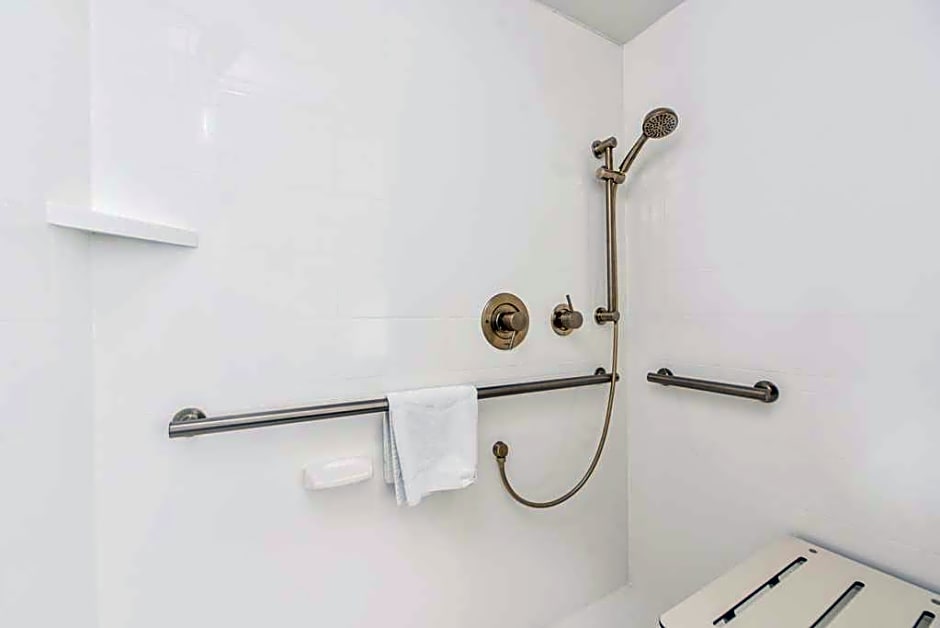 Any corresponding photo may not reflect the specific accessible room type or room feature. This mobility accessible, nonsmoking room features one double sized bed , and an accessible roll-in shower. The room features comfortable soft seating, a HDTV, and easy to operate alarm clock/radio. The free high speed internet access will help you stay connected while on the road. If you prefer not to work at the desk, you can use the convenient lapdesk instead. You'll also enjoy the convenience of having a coffee maker with tea service and iron/ironing board in your room.