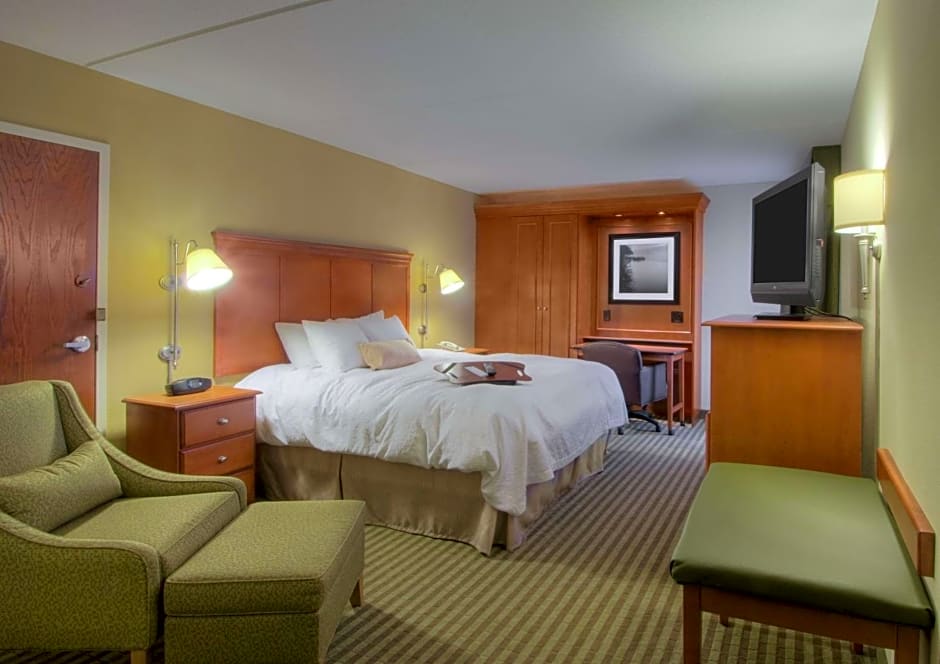 The Hampton Inn Wheeling offers a variety of room types including Queen Rooms with Two Queen Beds, King Rooms, and King Studios with a Spa Bath. Smoking is not allowed in any of the rooms. The occupancy ranges from double to quadruple, accommodating 2 to 4 adults and 1 to 3 children. Bed sizes include Queen and King beds, with some rooms also featuring a sofa bed.