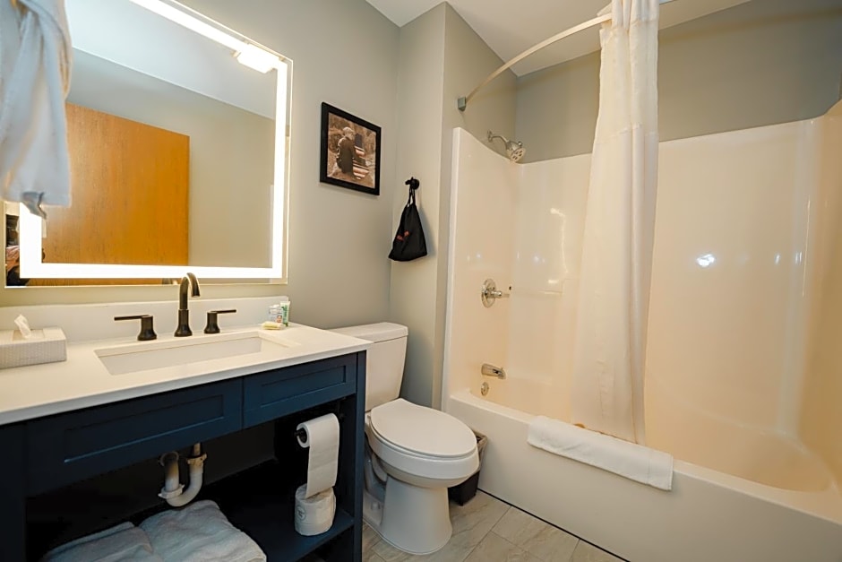 Free high-speed WiFi, free hot breakfast, roll-in shower, hand-held adjustable shower wand, bathroom safety bars, accessible vanity, mini-fridge, microwave, lounge chair, self-controlled temperature, coffee/tea maker, hair dryer, HDTV, bathroom amenities, alarm clock, desk with lamp, iron, pillow-top mattress