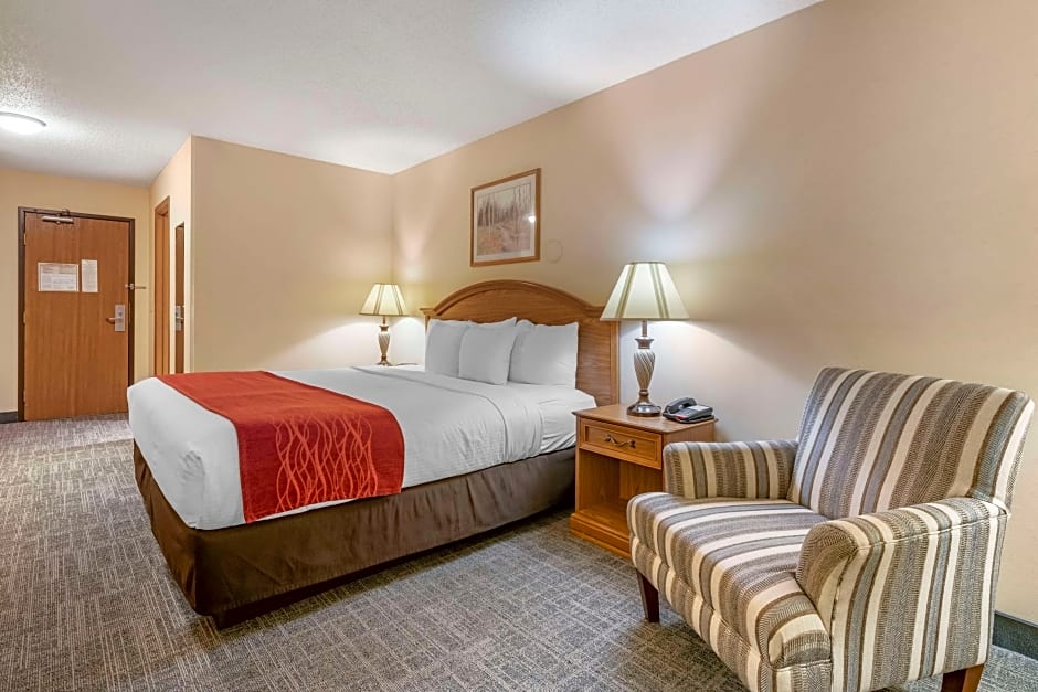 The hotel offers a variety of room types including Large Queen Room with Two Queen Beds, King Room, Queen Room with Two Queen Beds, and Large King Room. Most rooms are non-smoking and have a room size of 301 sqft. The rooms can accommodate between 2 adults and 4 children and feature either queen or king size beds. Some rooms are pet-friendly and others have disability access features such as a roll-in shower or bath tub.