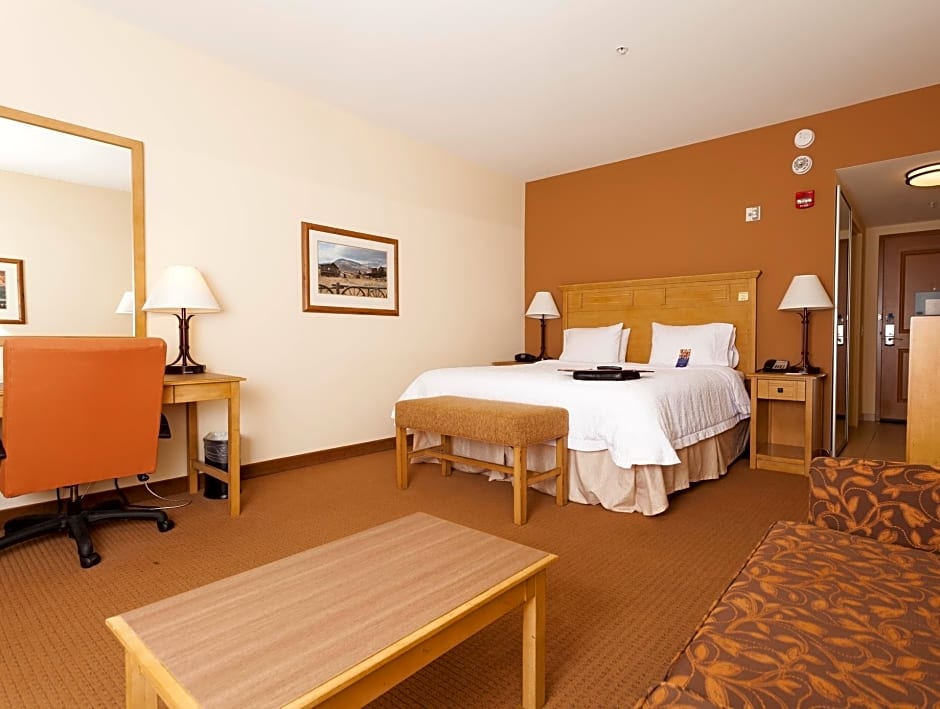 Sofa bed, free WiFi, 32-inch TV, easy chair with ottoman, coffeemaker, desk, shower Unwind in this non-smoking studio suite which features our king-sized clean and fresh Hampton bed®, and a comfortable easy chair with ottoman. Sit back on the sofa bed and a watch a movie on the 32-inch flat-screen TV, catch up on work at the large desk, or surf the web with free WiFi access. Refresh in the bathroom which has a WaterPik showerhead and curved shower rod that allows more light and space in the shower.