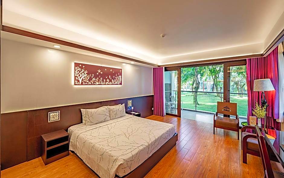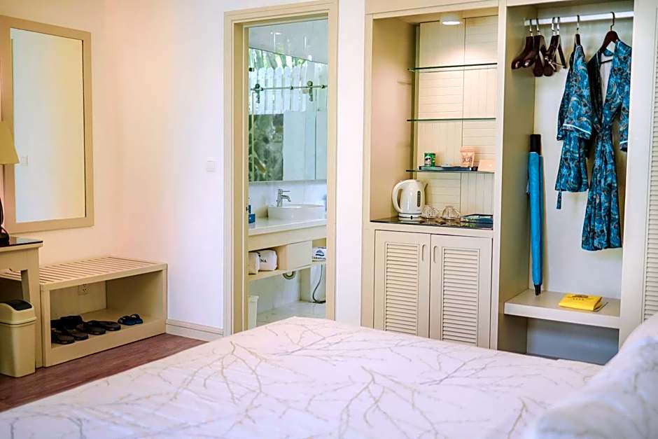 Fitted with a private terrace and private balcony that overlooks the garden, the deluxe twin rooms feature a personal safe, flat-screen cable TV and coffee/tea making facilities. The private bathrooms offer a rain shower, a hairdryer, a bathrobe, slippers and free toiletries. Complimentary WiFi access is provided, and rooms are equipped with 2 single beds.