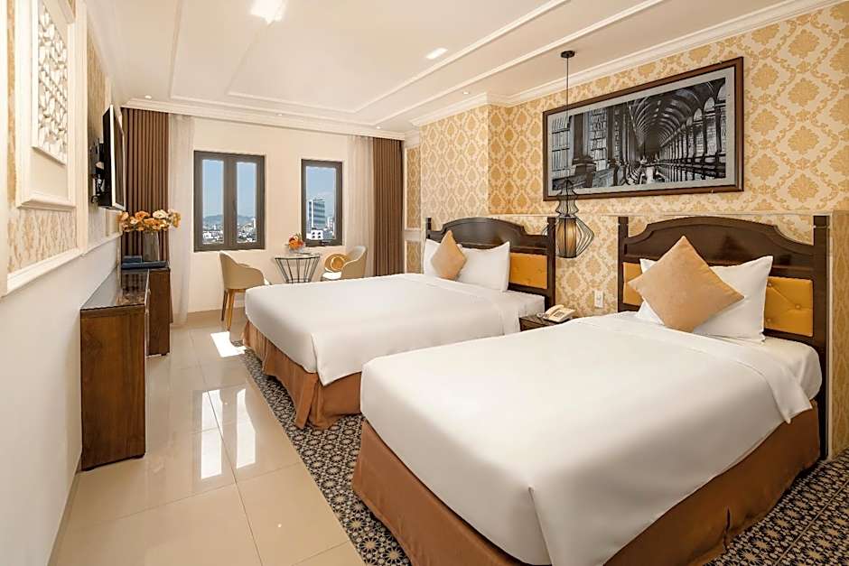 Nestled just 1,6mi from the vibrant heart of Da Nang, Bella Merry Hotel and Apartment - 100M To The My Khe Beach offers a delightful escape in Vietnam's charming coastal city. With its stunning beachfront location, you can soak up the sun on free beach umbrellas and loungers, or take a dip in the outdoor swimming pool—all while enjoying complimentary Wi-Fi and soundproof rooms for a peaceful retreat. Whether you're craving elegant rooms with mountain or garden views, or want the convenience of a private pool and kitchenette, this 4-star hotel has a cozy space perfect for every traveler.