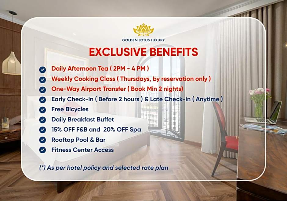 Golden Lotus Luxury Hotel Danang is a 4-star retreat in Da Nang, Vietnam, located about 2mi from the city center. The address is 198b Tran Bach Dang Street, Bac My Phu Ward, Ngu Hanh Son District, Da Nang City. The hotel has 1146 reviews from travelers.