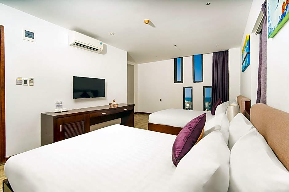 Address: 97 Vo Van Kiet Str, Da Nang, Vietnam. Minimum price starts from $74 per night. Reviews: 89. Featured amenities include a restaurant, beachfront access, free Wifi, room service, bar, terrace, air conditioning, soundproof rooms, 24-hour front desk, tour desk, elevator, and options such as garden or mountain views, kitchenware, kitchenette, and non-smoking rooms. Shuttle service (extra charges), airport shuttle (extra charges), and meeting/banquet facilities (extra charges) are also available.