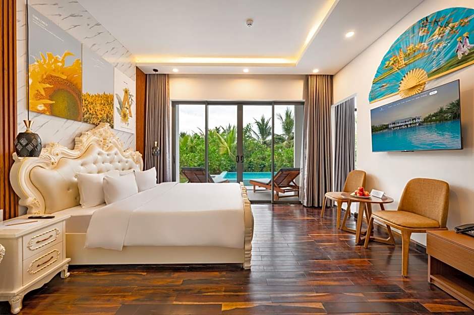 Langco Bay Retreat sits along Lang Co’s shimmering shores, inviting travelers to a breezy beachside escape just steps from a private beach area. A private pool offers a sun-drenched retreat, while an outdoor pool provides another place to cool off under the sky. The scene is finished with practical touches like a 24-hour front desk and a free Kids’ club, making family days and sunset strolls by the sea easy and enjoyable.