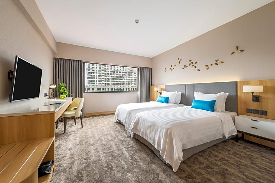 The Hanoi Hotel offers Premium Double or Twin Rooms and Deluxe Double or Twin Rooms. These rooms have a size of 301 sqft and can accommodate 2 adults and 1 child. Smoking is not allowed in these rooms. The Premium rooms have 2 twin beds, while the Deluxe rooms have either 2 twin beds or 1 queen size bed and 2 twin beds.