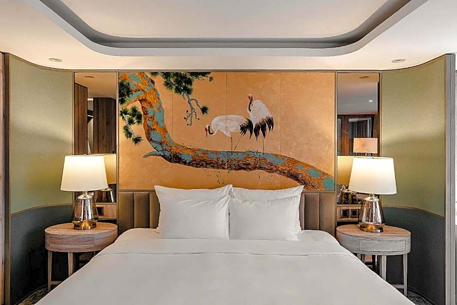 Deluxe City View Double is 323 square feet and includes a queen-size bed 150-154 width.